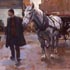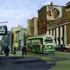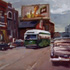 Busy pedestrians and an older CTA bus chugging down its Michigan