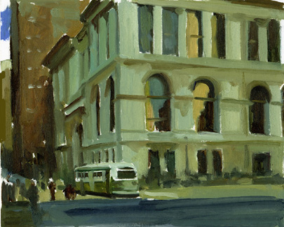 The Chicago Public Library Building, completed in 1894, fronts the busy corners of Michigan Avenue between Washington and Randolph